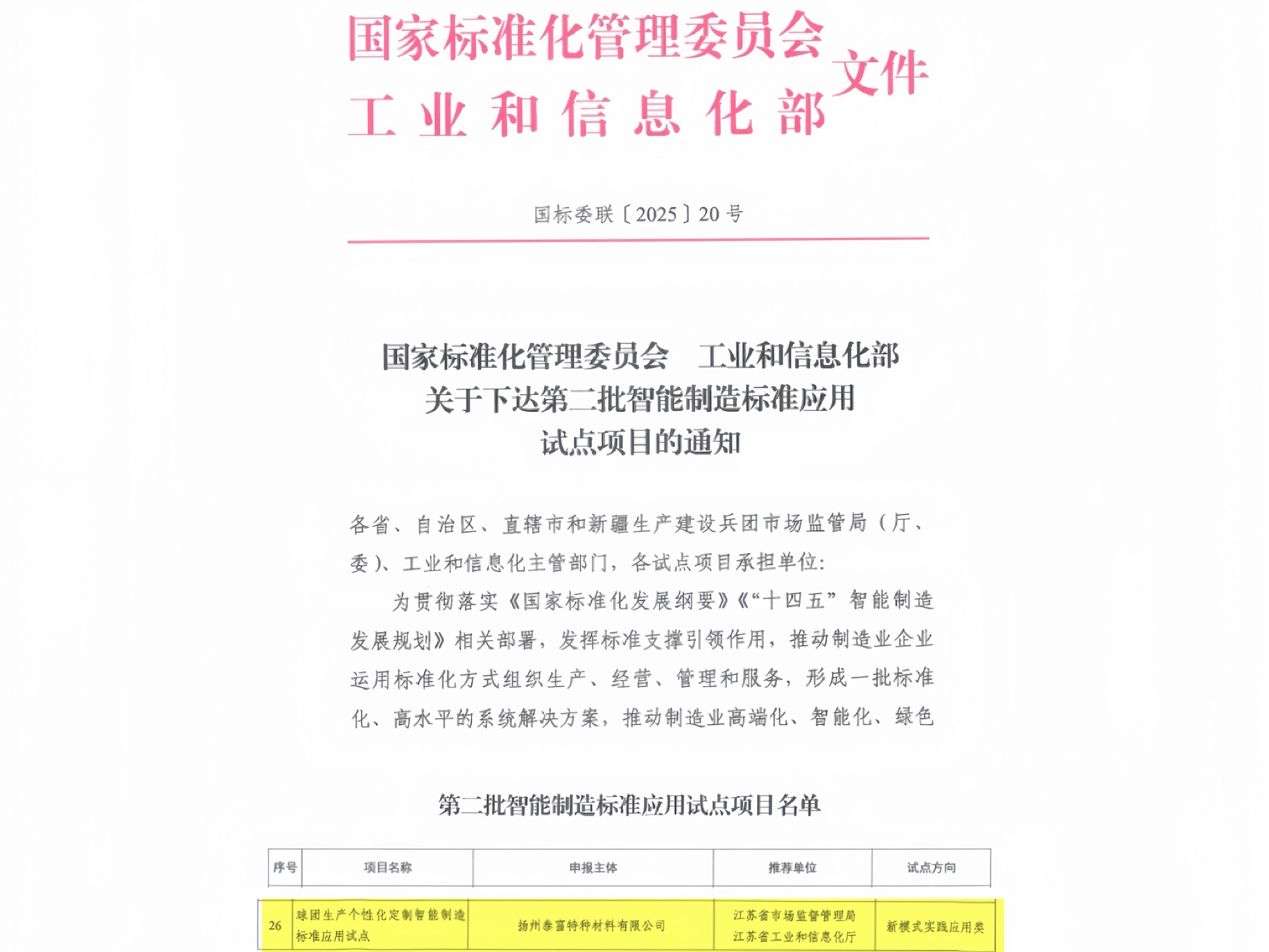 10月24日,扬州特材圆满召开了“球团生产个性化定制智能制造标准应用试点”项目启动会。扬州市市场监督管...